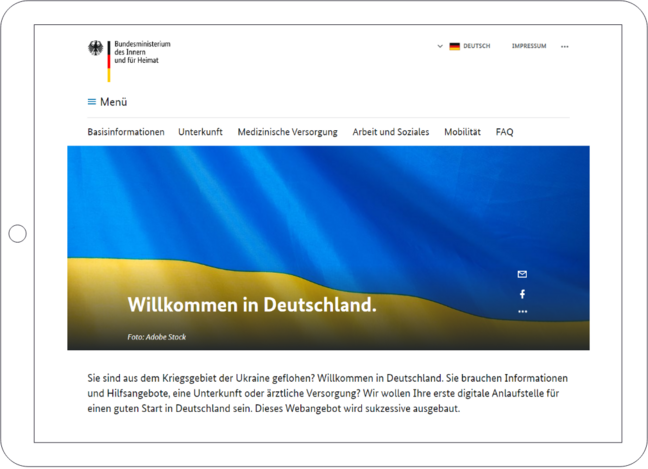 A criação do portal de ajuda Germany4Ukraine exigiu um ritmo rápido. O ]init[ Group apoiou o Ministério Federal do Interior (BMI) nesta tarefa de uma forma ágil e orientada para o utilizador.