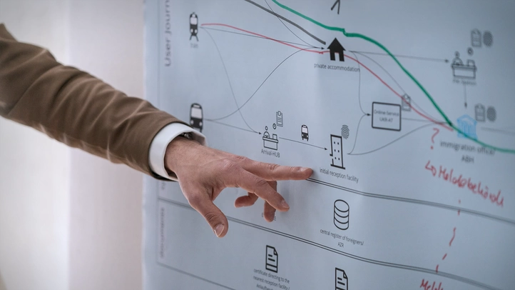 Alojamento e cuidados médicos, autorizações de trabalho ou ofertas de mobilidade - as pessoas recém-chegadas à Alemanha têm muitas perguntas. Para dar respostas num ambiente digital claro, o ]init[ Group trabalha com estruturas ágeis e equipas flexíveis durante a implementação.